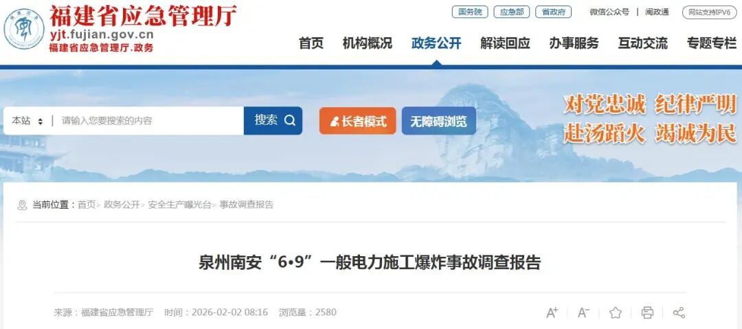 2月2日,福建省应急管理厅公布了《泉州南安“6·9”一般电力施工爆炸事故调查报告》。