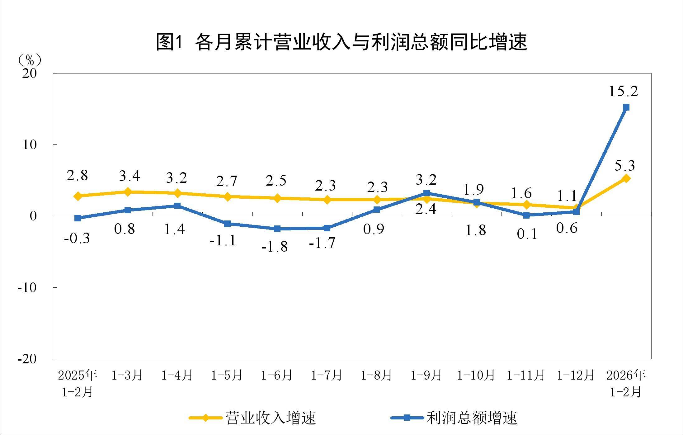 国家统计局工业司首席统计师于卫宁解读称,1~2月份,各地区各部门加紧实施更加积极有为的宏观政策,着力发挥存量政策和增量政策的集成效应,规模以上工业企业利润增长加快。