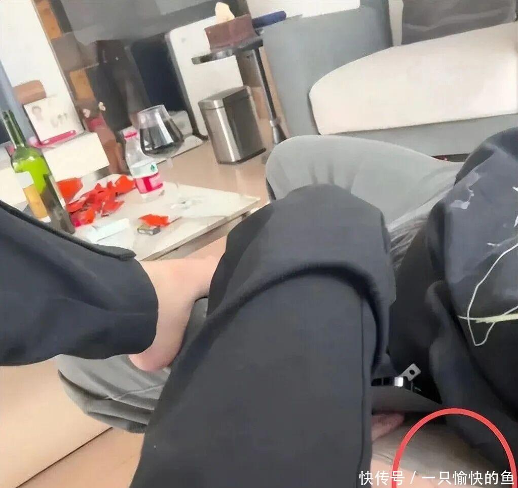 其中一张照片里,两人靠得极近,女方的脚甚至直接踩在男方的腿上。