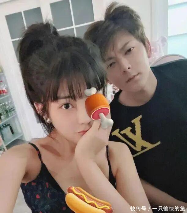 照片里女方穿得挺大胆,陈翔则是刚睡醒的邋遢样,脑袋贴在一起合影。