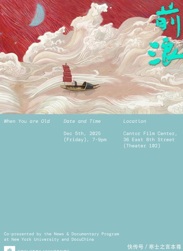 12月5日,由纽约大学新闻与纪录片项目与上海真实传媒合作呈现的放映活动:「重塑暮年:前浪之影」将展映系列纪录片《前浪》的两集,在西方的语境下聚焦中国都市的老年生活。 《前浪》系列一共分为七集,汇聚了二十余位老人的日常与故事。从上海宜家餐厅里热闹却微妙的“老年相亲角”出发,到认知症障碍照护中心里的“生离死别”。纪录片导演通过观察和访谈的方式,用影像的力量试图去颠覆观众们对于老年“孤独”、“凄惨”、“行动不便的”种种单一的刻板印象,去展现出丰富的情绪光谱:有爱情的缝隙、日常的挣扎、人际的暧昧、身体的坚持,以及在巨大城市里的自我调适与幽默。 这部系列作品在平台放映一年多之后,第一次走出国门,从来到了世界的另一座“魔都”纽约,我们希望借此契机,进一步展开关于老龄的公共讨论,并邀请在纽约的观众从自身的语境出发,重新审视与思考“城市生活”、“私人与公共空间”与“老年经验”之间抽象与却深刻的关联。纽约一直被视为西方现代都市生活、人口流动与城市规划的缩影,在这样一座高密度且不断变动的城市中,老去意味着什么?多文化的社区如何构成?独居是否等同于孤独?人与城市彼此塑造的边界在哪里?我们期待通过《前浪》的影像,与观众共同展开一场跨文化、跨代际的对话。 本次放映将延续&Doc系列的,旨在通过探索“纪录片”的影像边界,发掘新鲜的表现形式,和“主流”之外的多远声音,促进不同文化下电影语言的交流与重构。我们将有幸与《前浪》的总导演范士广、纽约大学新闻学院新闻纪录片系主任MarciaRock、和文化记者陈采薇进行映后对谈。 重塑暮年:前浪之影 WhenYouareOld:ReimaginingElderhoodinChina 放映时间:12月05日7:00pm 放映地点:NYUCantorFilmCenter,Theater10236East8thSt,NewYork (非纽约大学学生及教职人员需持有效证件入场) 活动详情请见 https://events.nyu.edu/event/379080-doc-ep08-film-screening-when-you-are-old-re 活动免费,请通过链接报名 https://forms.gle/zTcFeD7TFGoWKcWGA 片单